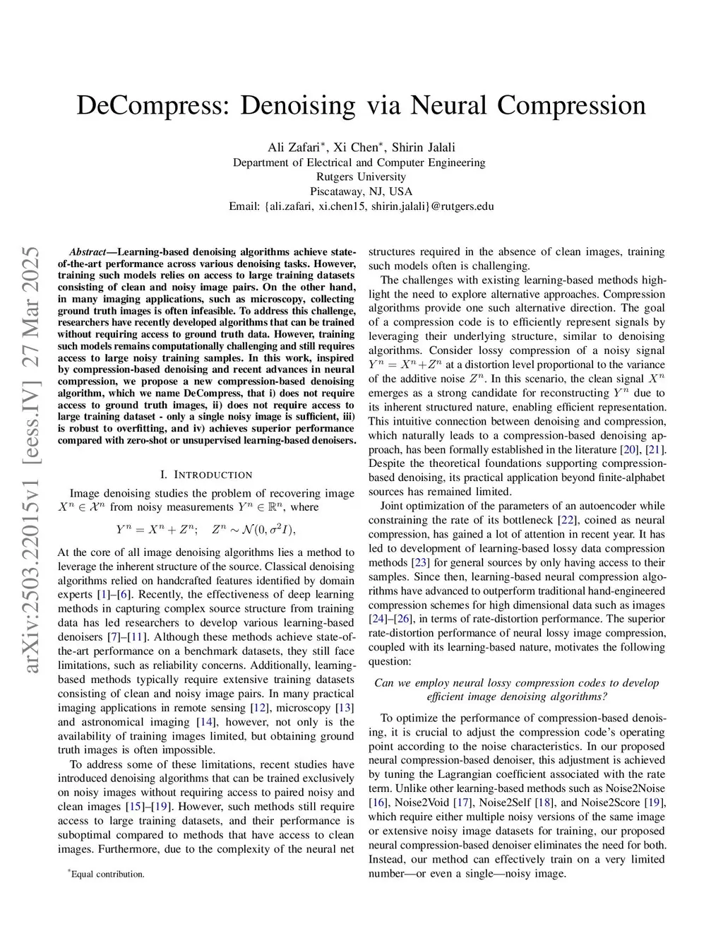 DeCompress: Denoising via Neural Compression
