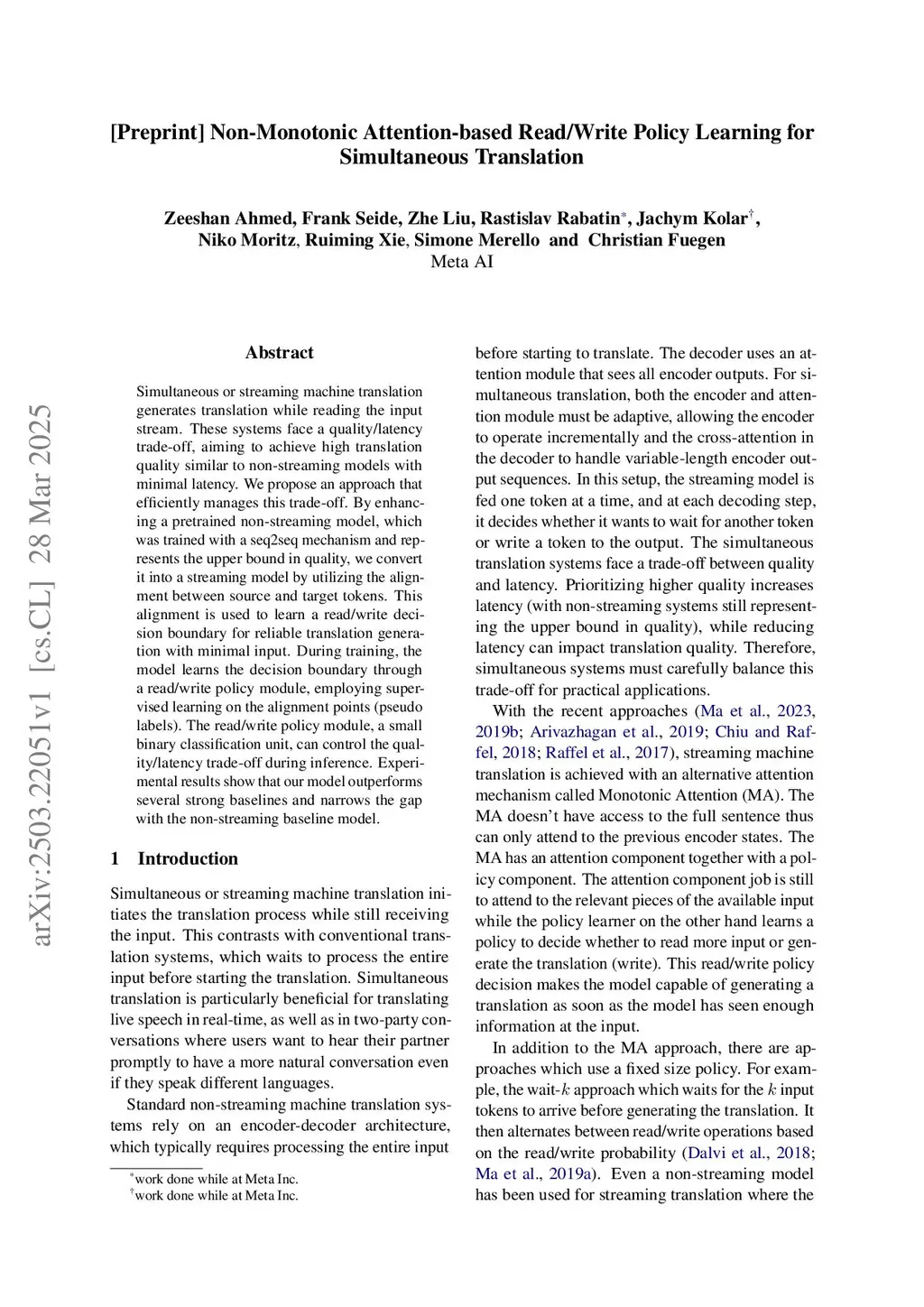 Non-Monotonic Attention-based Read/Write Policy Learning for Simultaneous Translation