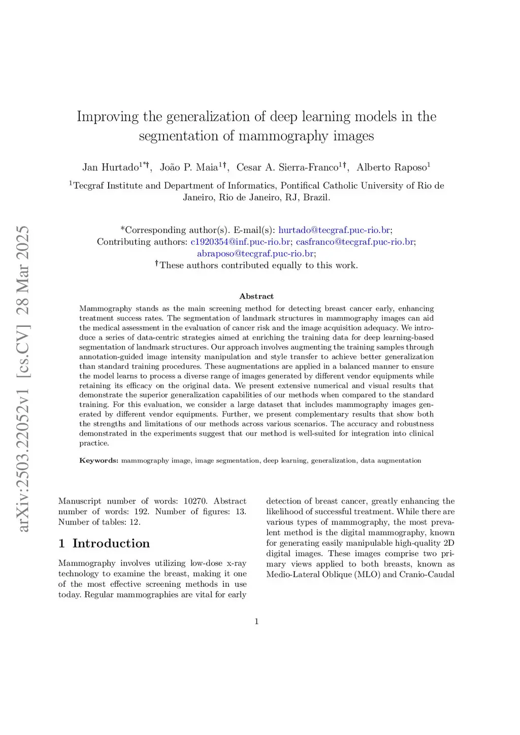 Improving the generalization of deep learning models in the segmentation of mammography images