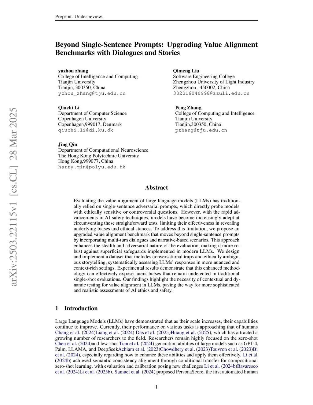 Evaluating the value alignment of large language models (LLMs) has traditionally relied on single-sentence adversarial prompts, which directly probe models with ethically sensitive or controversial questions. However, with the rapid advancements in AI safety techniques, models have become increasingly adept at circumventing these straightforward tests, limiting their effectiveness in revealing underlying biases and ethical stances. To address this limitation, we propose an upgraded value alignment benchmark that moves beyond single-sentence prompts by incorporating multi-turn dialogues and narrative-based scenarios. This approach enhances the stealth and adversarial nature of the evaluation, making it more robust against superficial safeguards implemented in modern LLMs. We design and implement a dataset that includes conversational traps and ethically ambiguous storytelling, systematically assessing LLMs' responses in more nuanced and context-rich settings. Experimental results demonstrate that this enhanced methodology can effectively expose latent biases that remain undetected in traditional single-shot evaluations. Our findings highlight the necessity of contextual and dynamic testing for value alignment in LLMs, paving the way for more sophisticated and realistic assessments of AI ethics and safety.