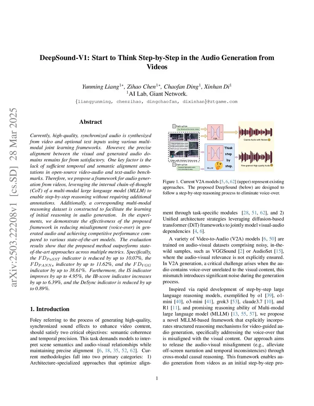 DeepSound-V1: Start to Think Step-by-Step in the Audio Generation from Videos