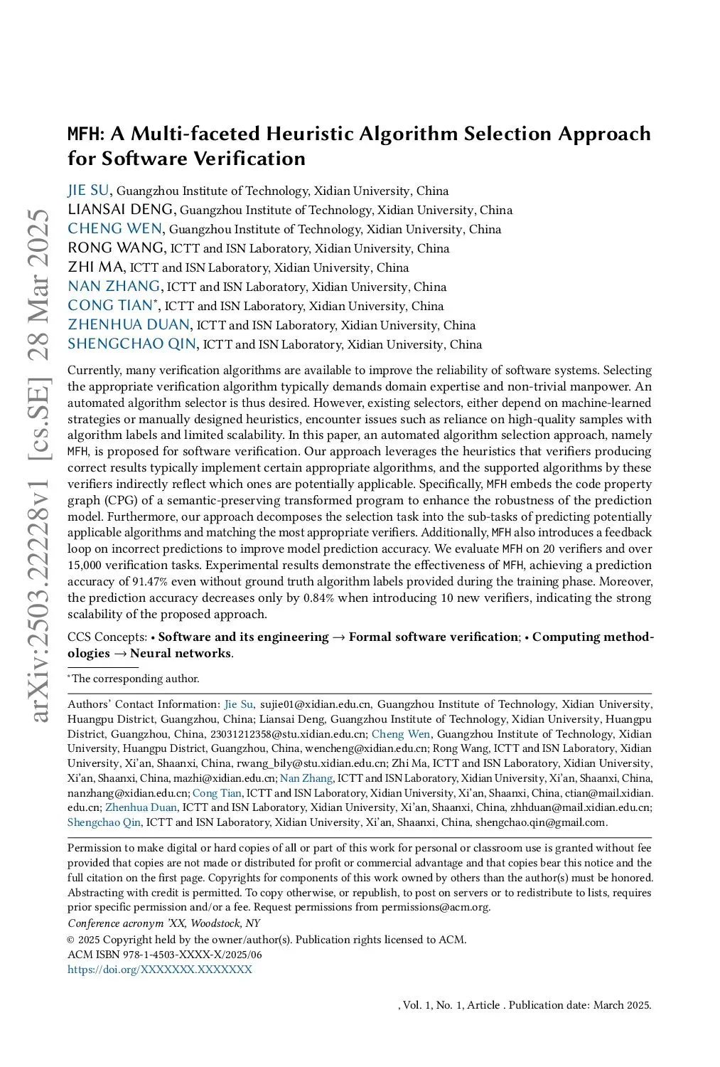 MFH: A Multi-faceted Heuristic Algorithm Selection Approach for Software Verification