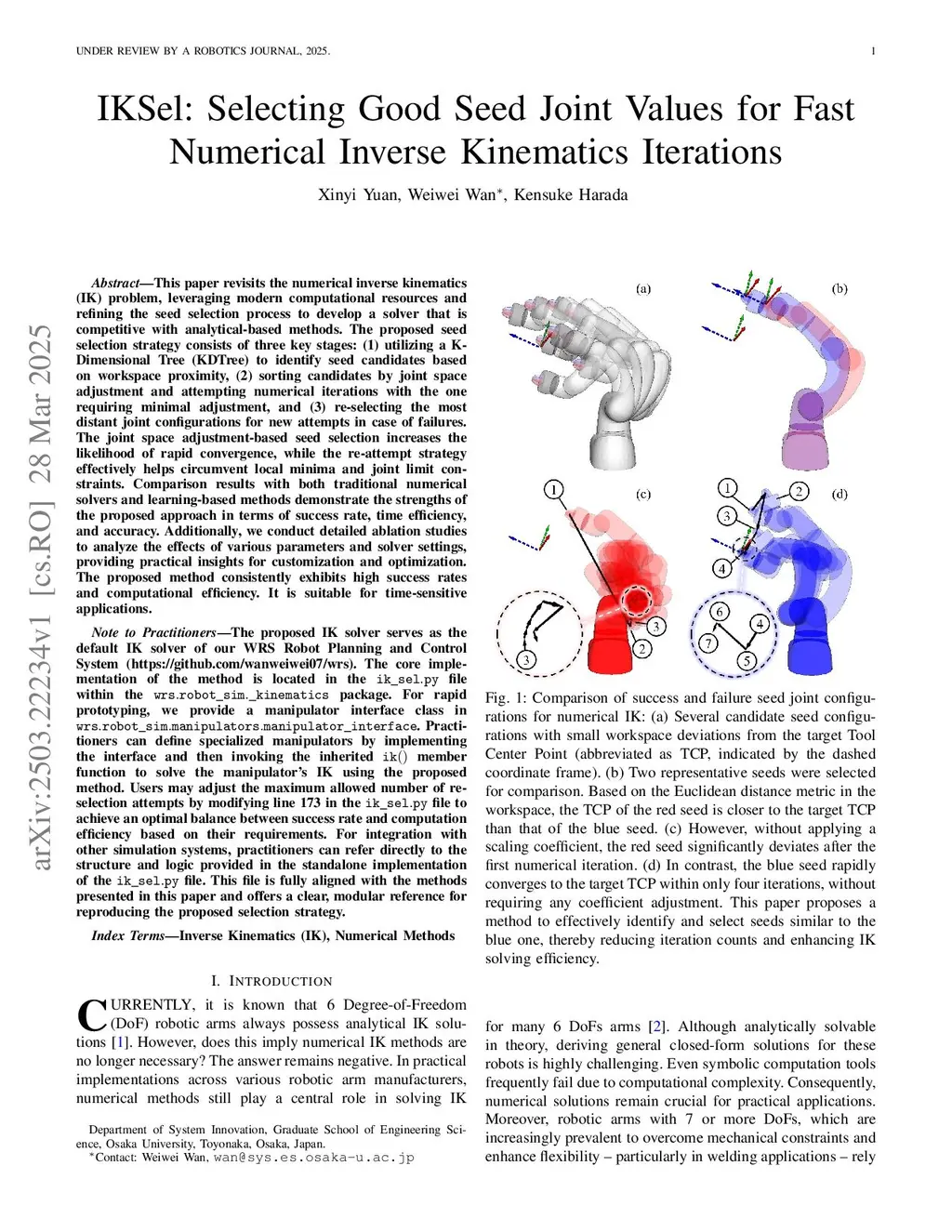 IKSel: Selecting Good Seed Joint Values for Fast Numerical Inverse Kinematics Iterations