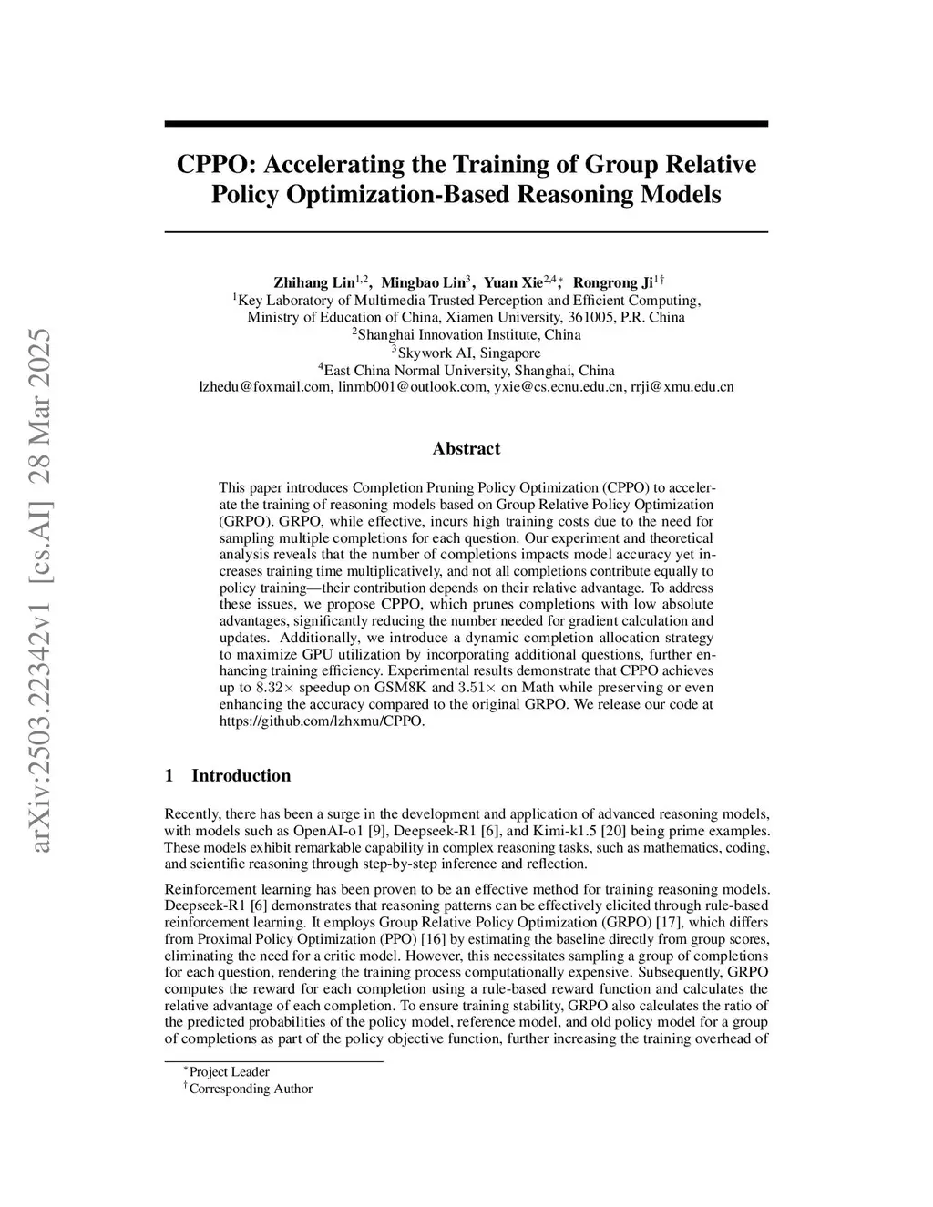 CPPO: Accelerating the Training of Group Relative Policy Optimization-Based Reasoning Models