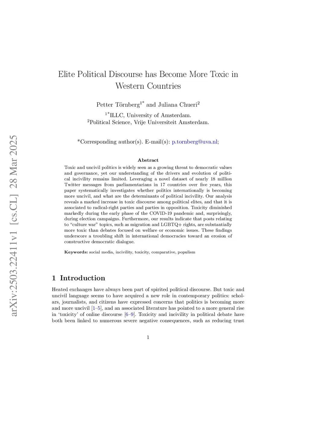 Elite Political Discourse has Become More Toxic in Western Countries