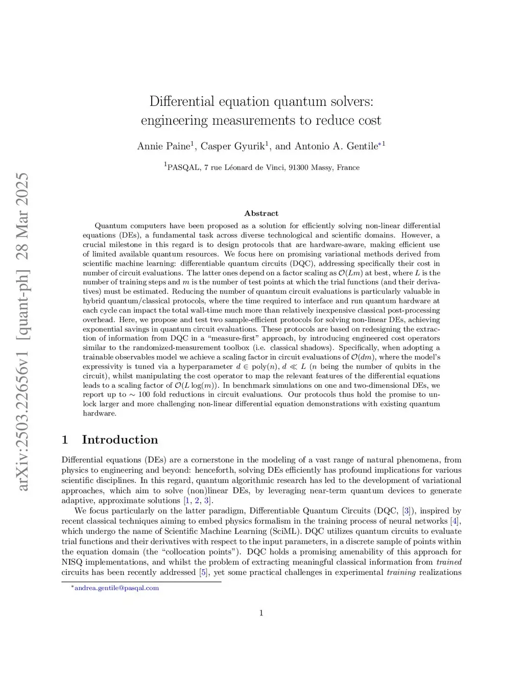 Quantum computers have been proposed as a solution for efficiently solving non-linear differential equations (DEs), a fundamental task across diverse technological and scientific domains. However, a crucial milestone in this regard is to design protocols that are hardware-aware, making efficient use of limited available quantum resources. We focus here on promising variational methods derived from scientific machine learning: differentiable quantum circuits (DQC), addressing specifically their cost in number of circuit evaluations. Reducing the number of quantum circuit evaluations is particularly valuable in hybrid quantum/classical protocols, where the time required to interface and run quantum hardware at each cycle can impact the total wall-time much more than relatively inexpensive classical post-processing overhead. Here, we propose and test two sample-efficient protocols for solving non-linear DEs, achieving exponential savings in quantum circuit evaluations. These protocols are based on redesigning the extraction of information from DQC in a ``measure-first" approach, by introducing engineered cost operators similar to the randomized-measurement toolbox (i.e. classical shadows). In benchmark simulations on one and two-dimensional DEs, we report up to 100 fold reductions in circuit evaluations. Our protocols thus hold the promise to unlock larger and more challenging non-linear differential equation demonstrations with existing quantum hardware.