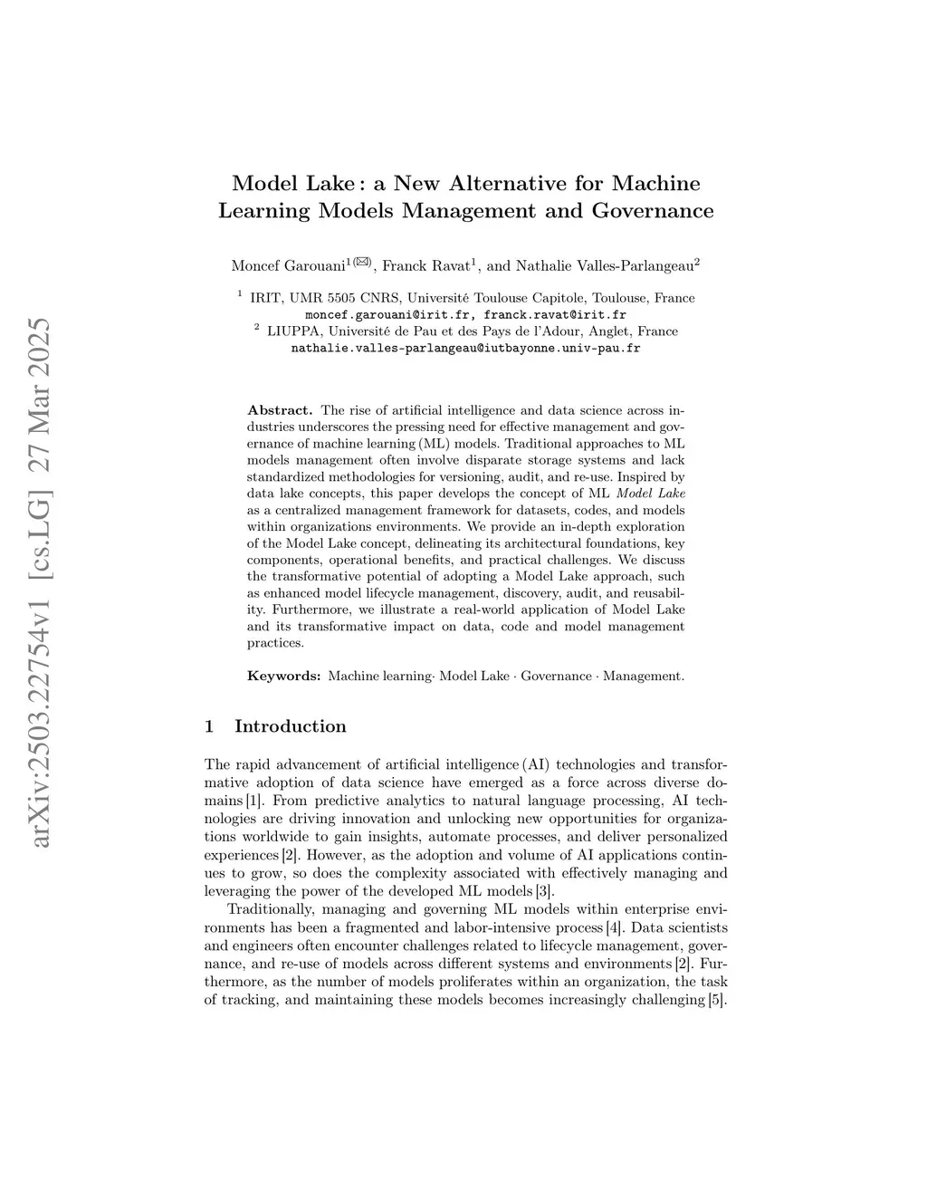 Model Lake: a New Alternative for Machine Learning Models Management and Governance