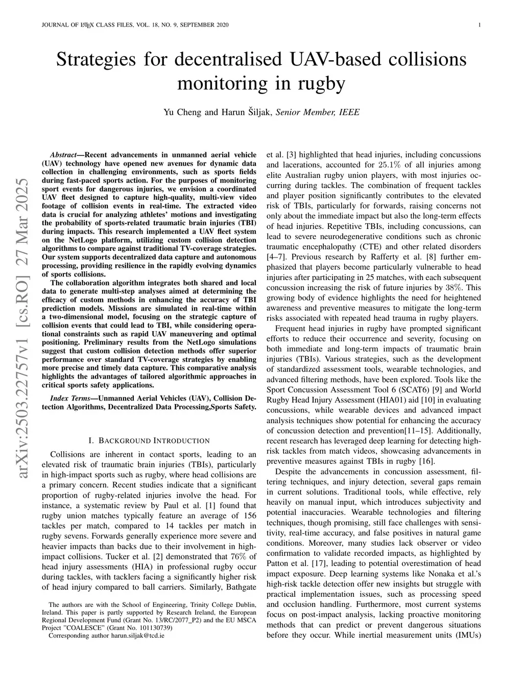 Strategies for decentralised UAV-based collisions monitoring in rugby