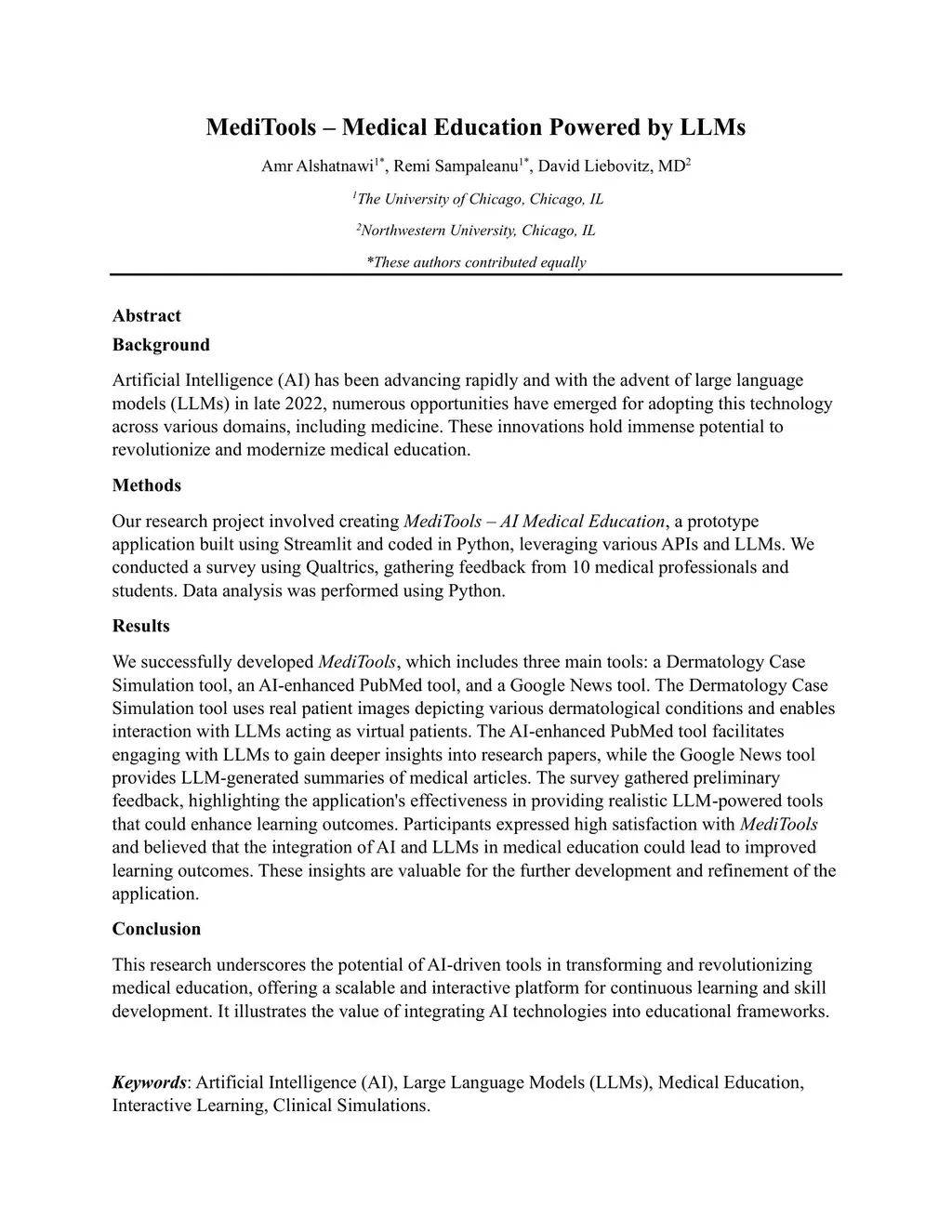 MediTools -- Medical Education Powered by LLMs