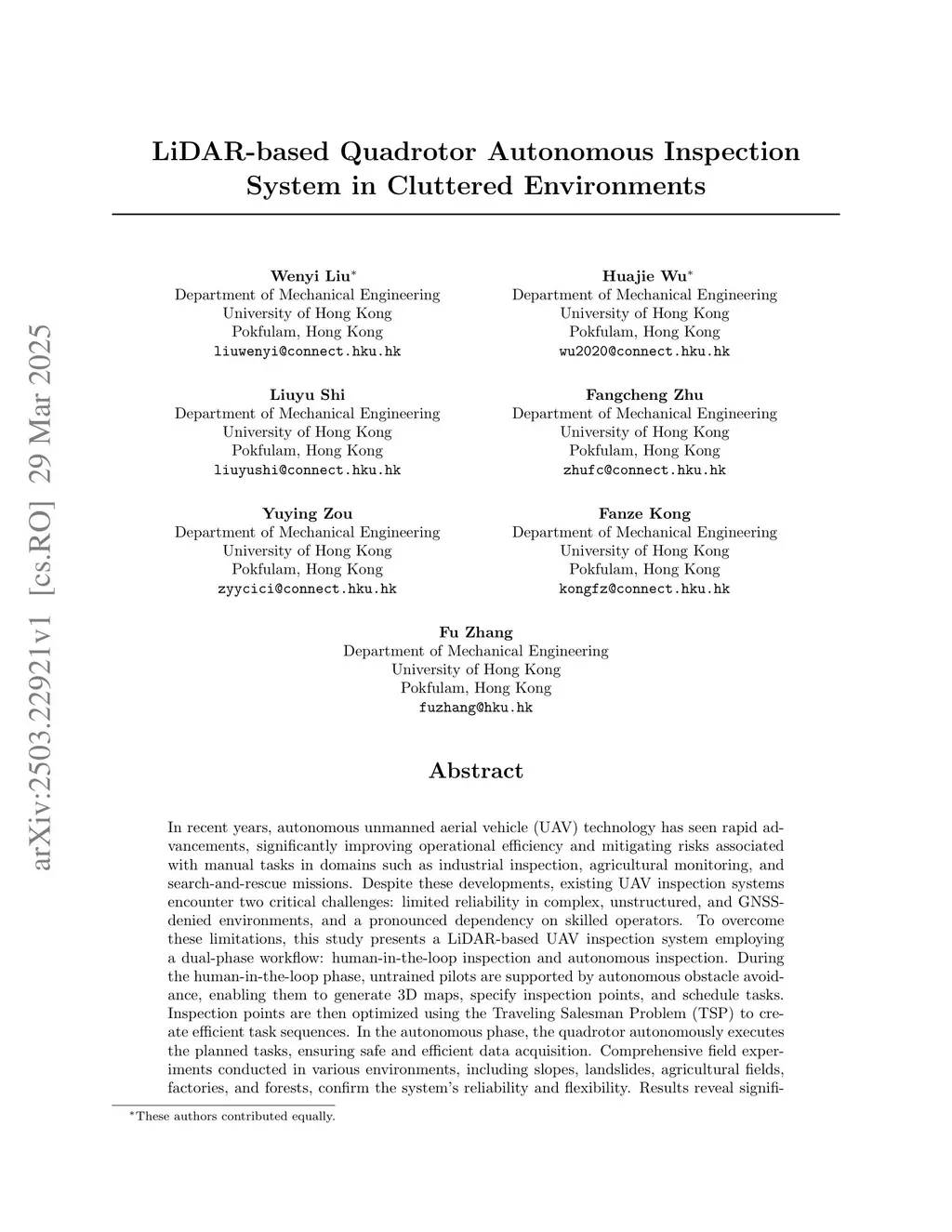 In recent years, autonomous unmanned aerial vehicle (UAV) technology has seen rapid advancements, significantly improving operational efficiency and mitigating risks associated with manual tasks in domains such as industrial inspection, agricultural monitoring, and search-and-rescue missions. Despite these developments, existing UAV inspection systems encounter two critical challenges: limited reliability in complex, unstructured, and GNSS-denied environments, and a pronounced dependency on skilled operators. To overcome these limitations, this study presents a LiDAR-based UAV inspection system employing a dual-phase workflow: human-in-the-loop inspection and autonomous inspection. During the human-in-the-loop phase, untrained pilots are supported by autonomous obstacle avoidance, enabling them to generate 3D maps, specify inspection points, and schedule tasks. Inspection points are then optimized using the Traveling Salesman Problem (TSP) to create efficient task sequences. In the autonomous phase, the quadrotor autonomously executes the planned tasks, ensuring safe and efficient data acquisition. Comprehensive field experiments conducted in various environments, including slopes, landslides, agricultural fields, factories, and forests, confirm the system's reliability and flexibility. Results reveal significant enhancements in inspection efficiency, with autonomous operations reducing trajectory length by up to 40\% and flight time by 57\% compared to human-in-the-loop operations. These findings underscore the potential of the proposed system to enhance UAV-based inspections in safety-critical and resource-constrained scenarios.