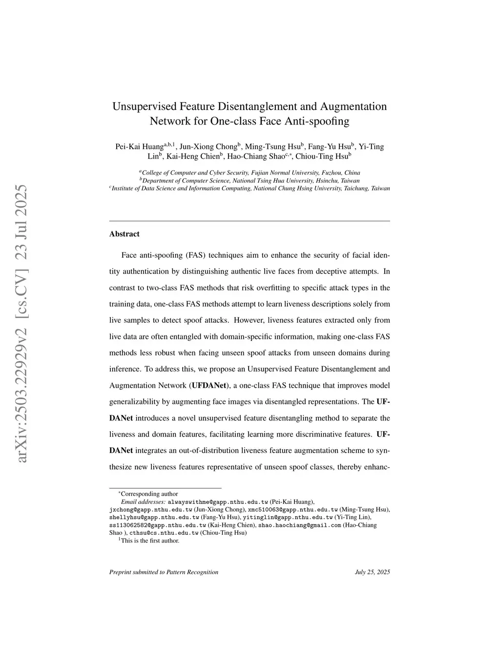 Unsupervised Feature Disentanglement and Augmentation Network for One-class Face Anti-spoofing