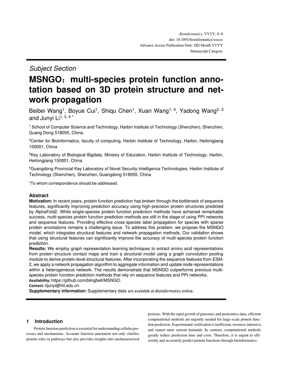 MSNGO: multi-species protein function annotation based on 3D protein structure and network propagation