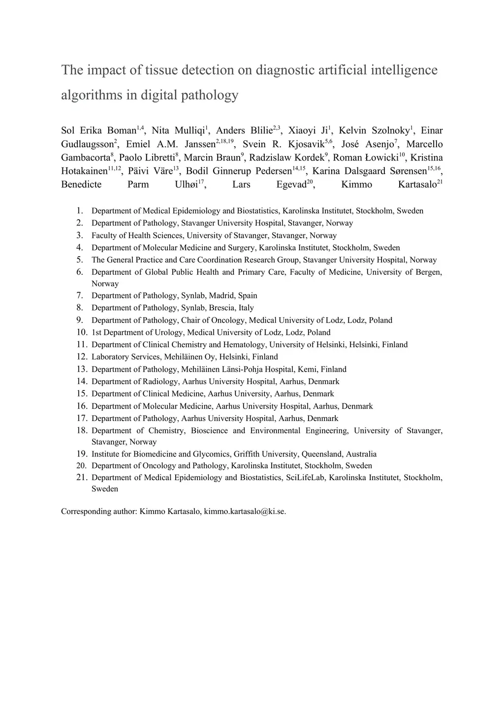 The impact of tissue detection on diagnostic artificial intelligence algorithms in digital pathology