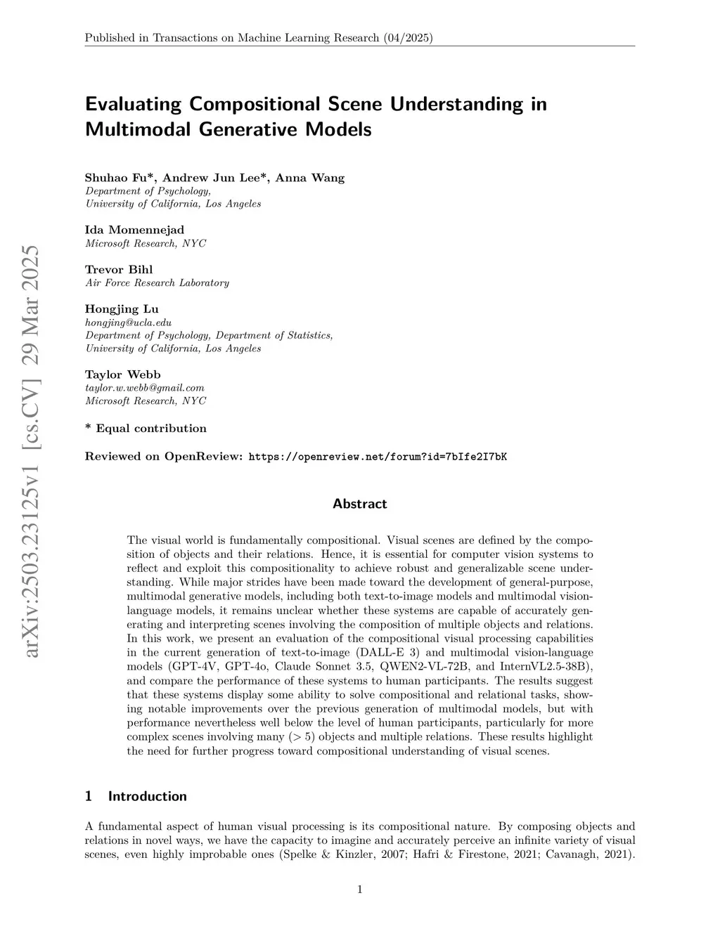 Evaluating Compositional Scene Understanding in Multimodal Generative Models