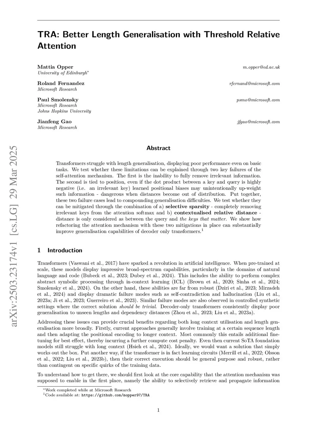 TRA: Better Length Generalisation with Threshold Relative Attention
