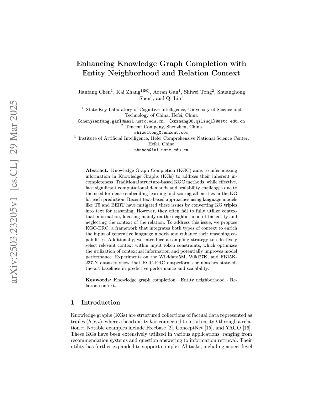 Enhancing Knowledge Graph Completion with Entity Neighborhood and Relation Context