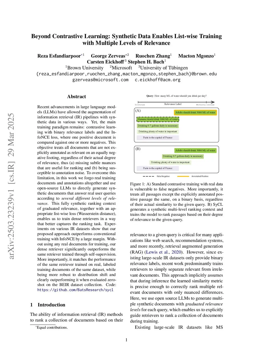 Beyond Contrastive Learning: Synthetic Data Enables List-wise Training with Multiple Levels of Relevance