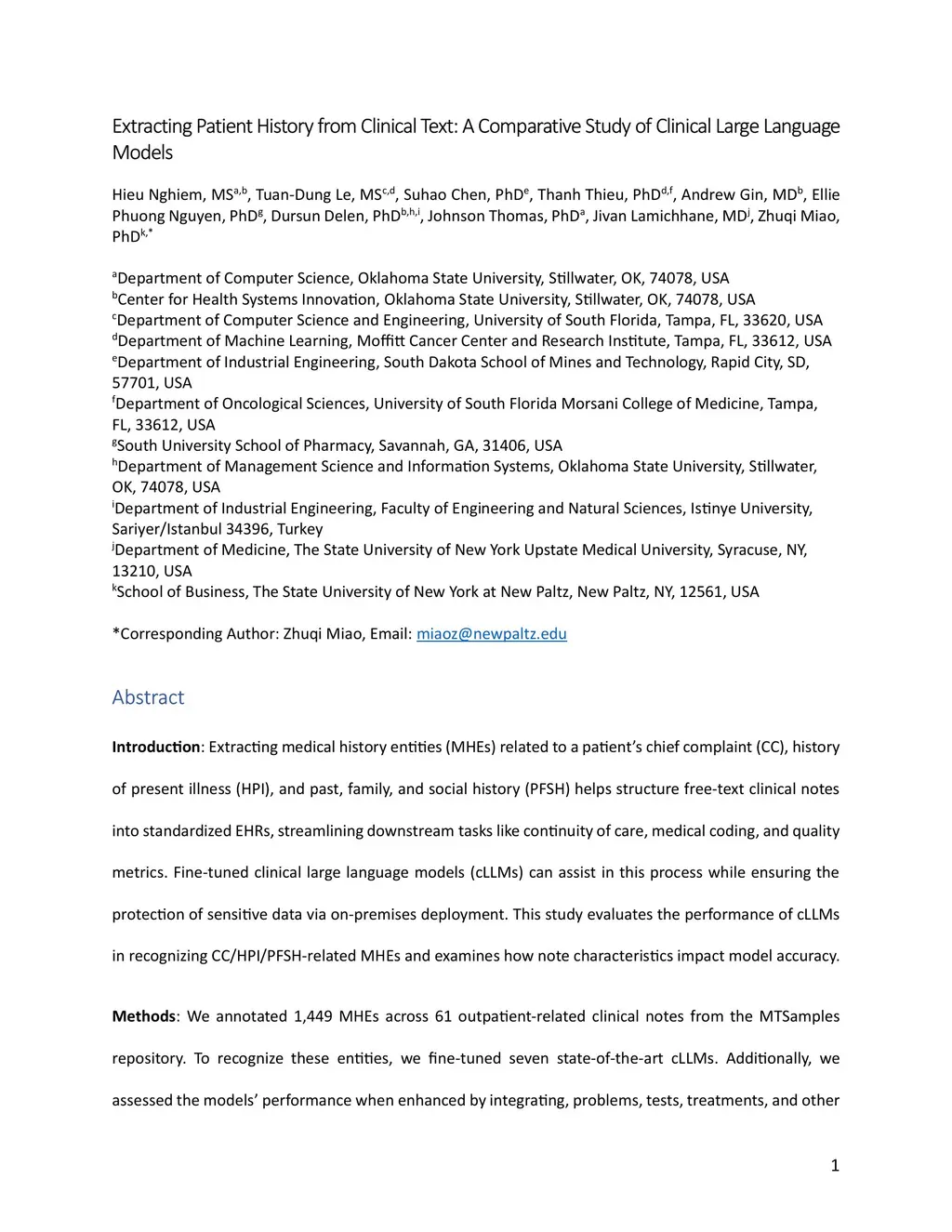 Extracting Patient History from Clinical Text: A Comparative Study of Clinical Large Language Models