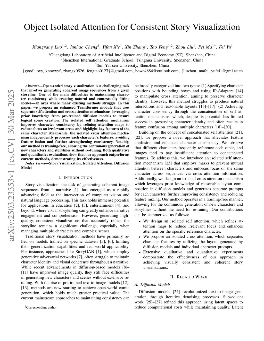 Open-ended story visualization is a challenging task that involves generating coherent image sequences from a given storyline. One of the main difficulties is maintaining character consistency while creating natural and contextually fitting scenes--an area where many existing methods struggle. In this paper, we propose an enhanced Transformer module that uses separate self attention and cross attention mechanisms, leveraging prior knowledge from pre-trained diffusion models to ensure logical scene creation. The isolated self attention mechanism improves character consistency by refining attention maps to reduce focus on irrelevant areas and highlight key features of the same character. Meanwhile, the isolated cross attention mechanism independently processes each character's features, avoiding feature fusion and further strengthening consistency. Notably, our method is training-free, allowing the continuous generation of new characters and storylines without re-tuning. Both qualitative and quantitative evaluations show that our approach outperforms current methods, demonstrating its effectiveness.