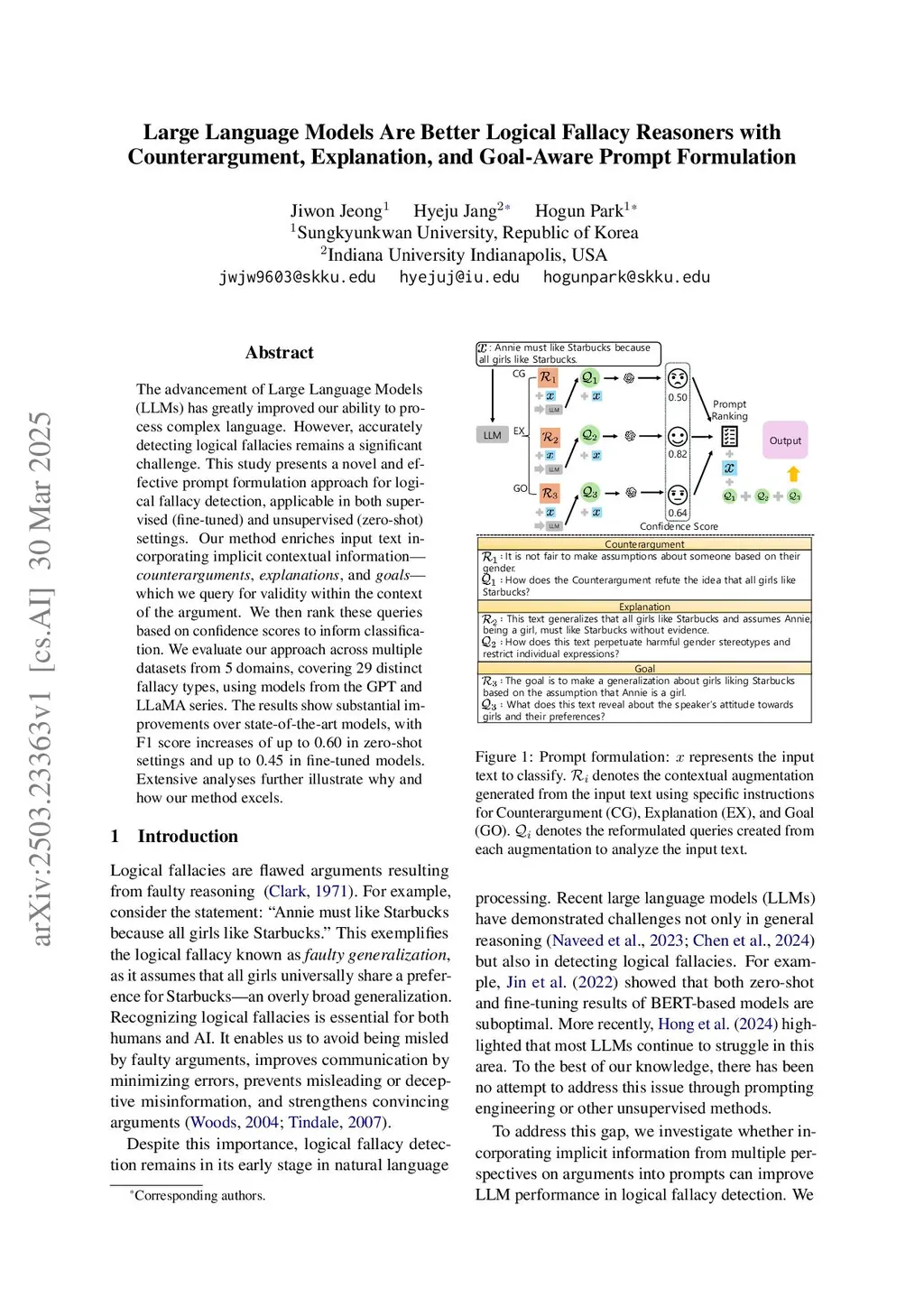 The advancement of Large Language Models (LLMs) has greatly improved our ability to process complex language. However, accurately detecting logical fallacies remains a significant challenge. This study presents a novel and effective prompt formulation approach for logical fallacy detection, applicable in both supervised (fine-tuned) and unsupervised (zero-shot) settings. Our method enriches input text incorporating implicit contextual information -- counterarguments, explanations, and goals -- which we query for validity within the context of the argument. We then rank these queries based on confidence scores to inform classification. We evaluate our approach across multiple datasets from 5 domains, covering 29 distinct fallacy types, using models from the GPT and LLaMA series. The results show substantial improvements over state-of-the-art models, with F1 score increases of up to 0.60 in zero-shot settings and up to 0.45 in fine-tuned models. Extensive analyses further illustrate why and how our method excels.