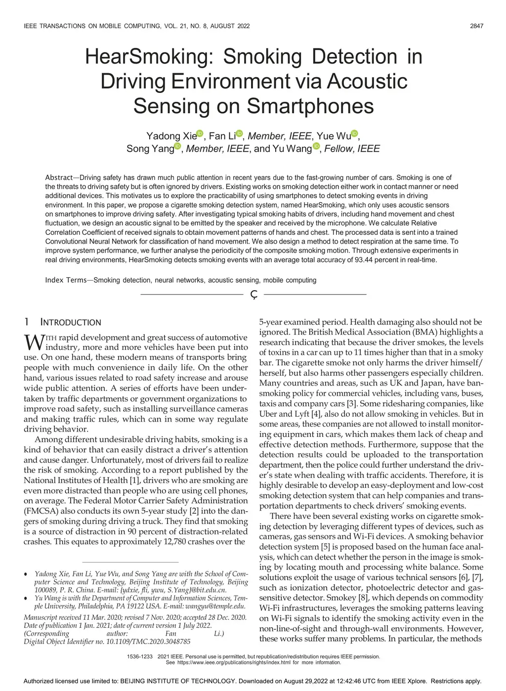 HearSmoking: Smoking Detection in Driving Environment via Acoustic Sensing on Smartphones