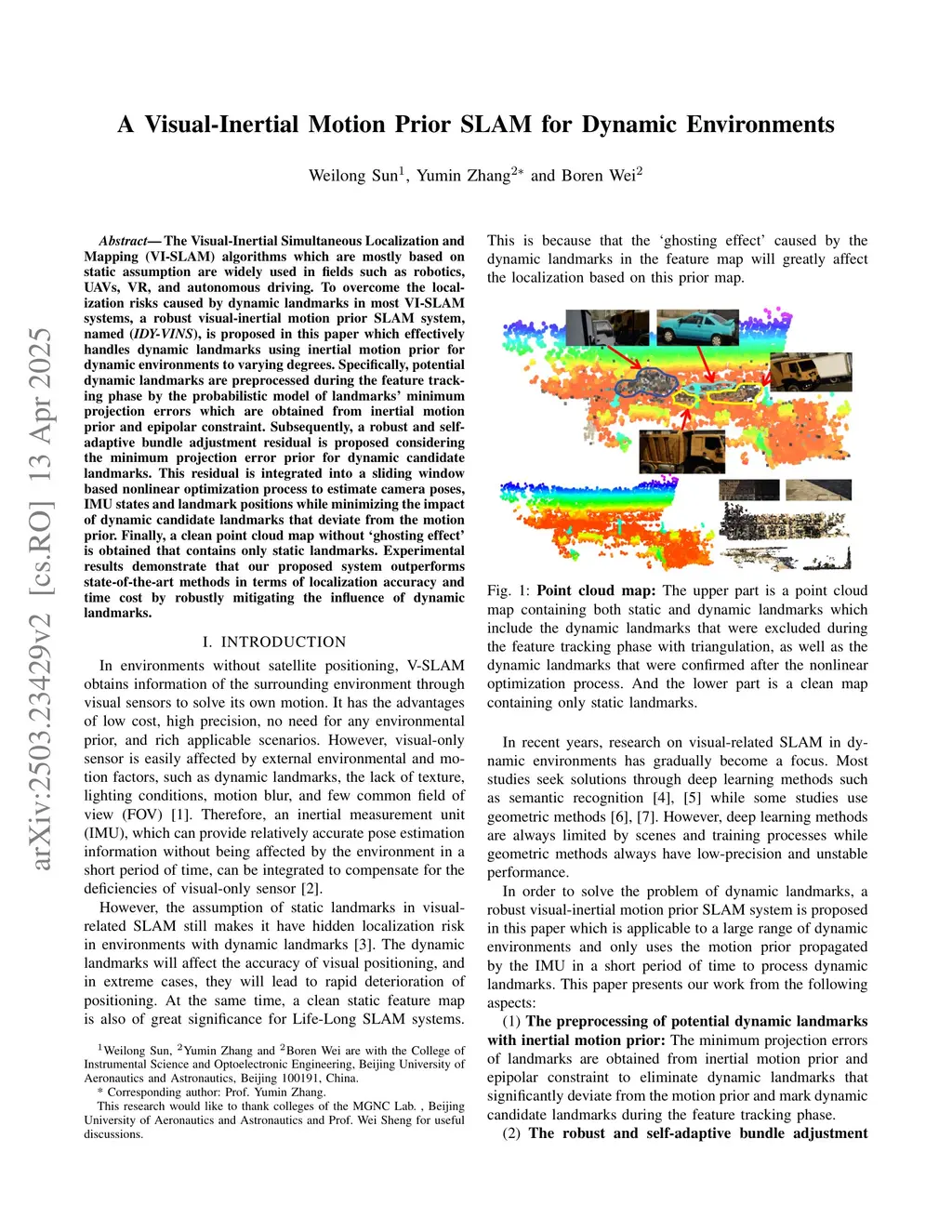 A Visual-Inertial Motion Prior SLAM for Dynamic Environments