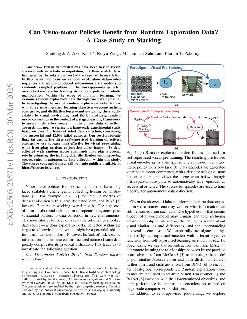 Data scarcity presents a key bottleneck for imitation learning in robotic manipulation. In this paper, we focus on random exploration data-actions and video sequences produced autonomously via motions to randomly sampled positions in the workspace-to investigate their potential as a cost-effective data source. Our investigation follows two paradigms: (a) random actions, where we assess their feasibility for autonomously bootstrapping data collection policies, and (b) random exploration video frames, where we evaluate their effectiveness in pre-training parameter-dense networks with self-supervised learning objectives. To minimize human supervision, we first develop a fully automated pipeline that handles episode labeling, termination, and resetting using cloud-based microservices for real-time monitoring. Building on this, we present a large-scale study on the cost-effectiveness of real-world random exploration in a non-trivial two-layer stacking task, drawing on statistical results from 807 hours of random actions, 71 hours of random exploration video (1.28M frames), and 1,260 times of policy evaluation. The dataset will be made publicly available and access to the robot environment with the automated pipeline is to be made accessible via cloud service for future research.
