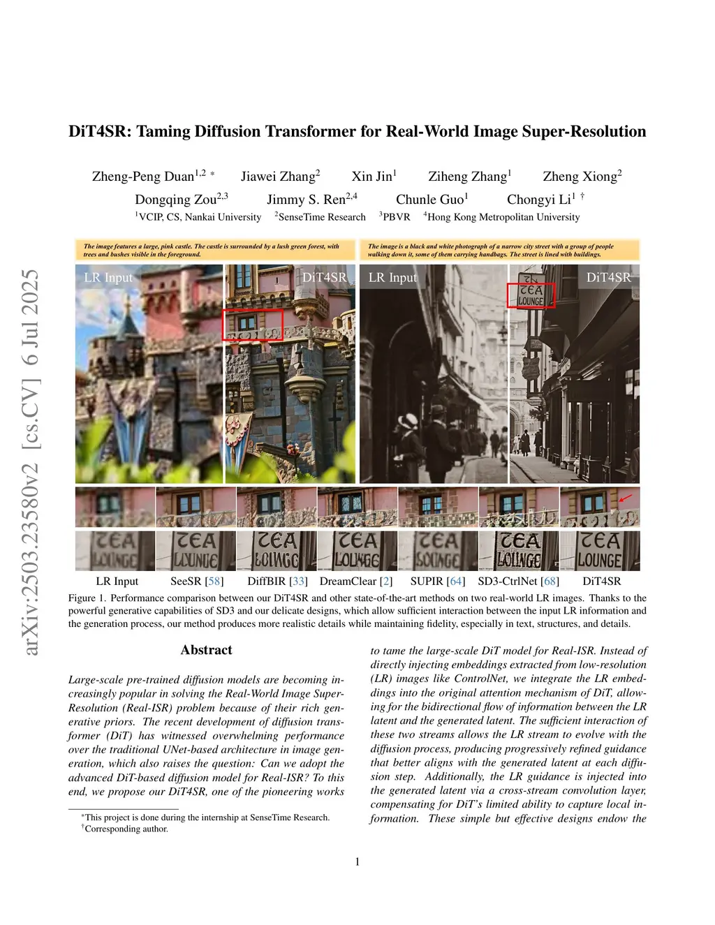 Large-scale pre-trained diffusion models are becoming increasingly popular in solving the Real-World Image Super-Resolution (Real-ISR) problem because of their rich generative priors. The recent development of diffusion transformer (DiT) has witnessed overwhelming performance over the traditional UNet-based architecture in image generation, which also raises the question: Can we adopt the advanced DiT-based diffusion model for Real-ISR? To this end, we propose our DiT4SR, one of the pioneering works to tame the large-scale DiT model for Real-ISR. Instead of directly injecting embeddings extracted from low-resolution (LR) images like ControlNet, we integrate the LR embeddings into the original attention mechanism of DiT, allowing for the bidirectional flow of information between the LR latent and the generated latent. The sufficient interaction of these two streams allows the LR stream to evolve with the diffusion process, producing progressively refined guidance that better aligns with the generated latent at each diffusion step. Additionally, the LR guidance is injected into the generated latent via a cross-stream convolution layer, compensating for DiT's limited ability to capture local information. These simple but effective designs endow the DiT model with superior performance in Real-ISR, which is demonstrated by extensive experiments. Project Page:this https URL.