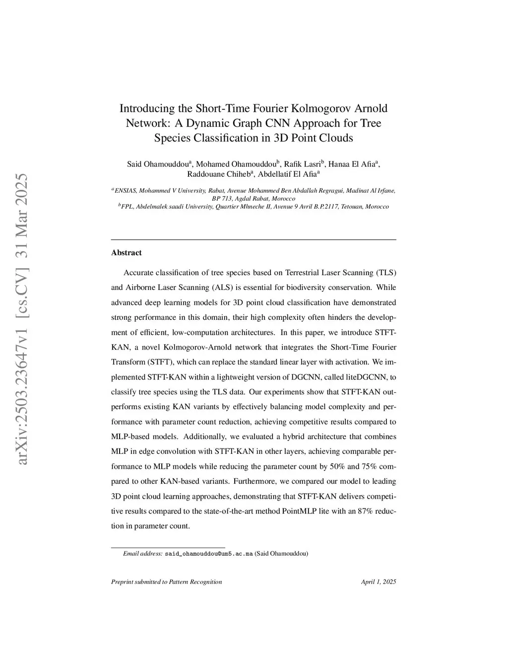 Introducing the Short-Time Fourier Kolmogorov Arnold Network: A Dynamic Graph CNN Approach for Tree Species Classification in 3D Point Clouds