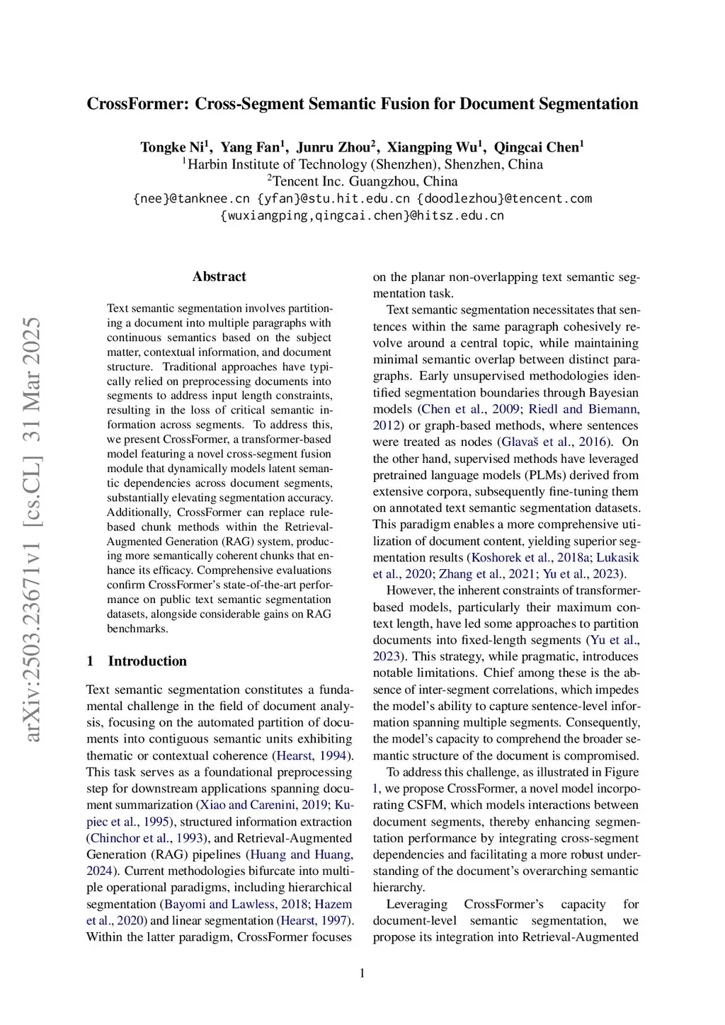 CrossFormer: Cross-Segment Semantic Fusion for Document Segmentation