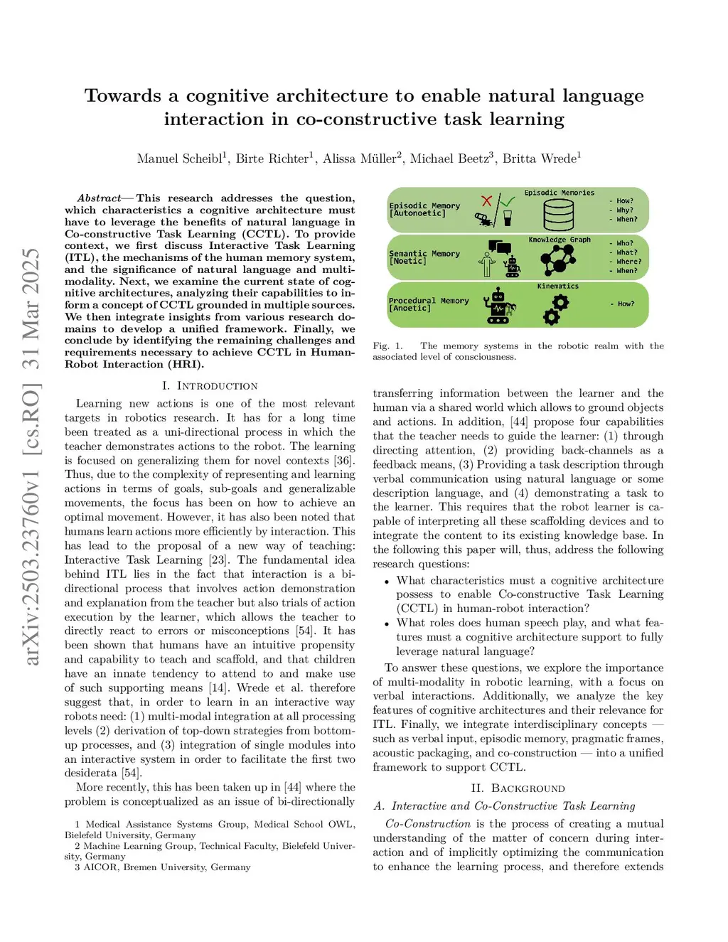 Towards a cognitive architecture to enable natural language interaction in co-constructive task learning