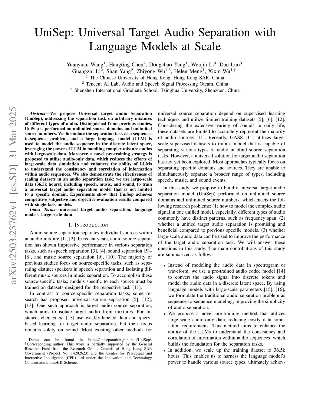 UniSep: Universal Target Audio Separation with Language Models at Scale