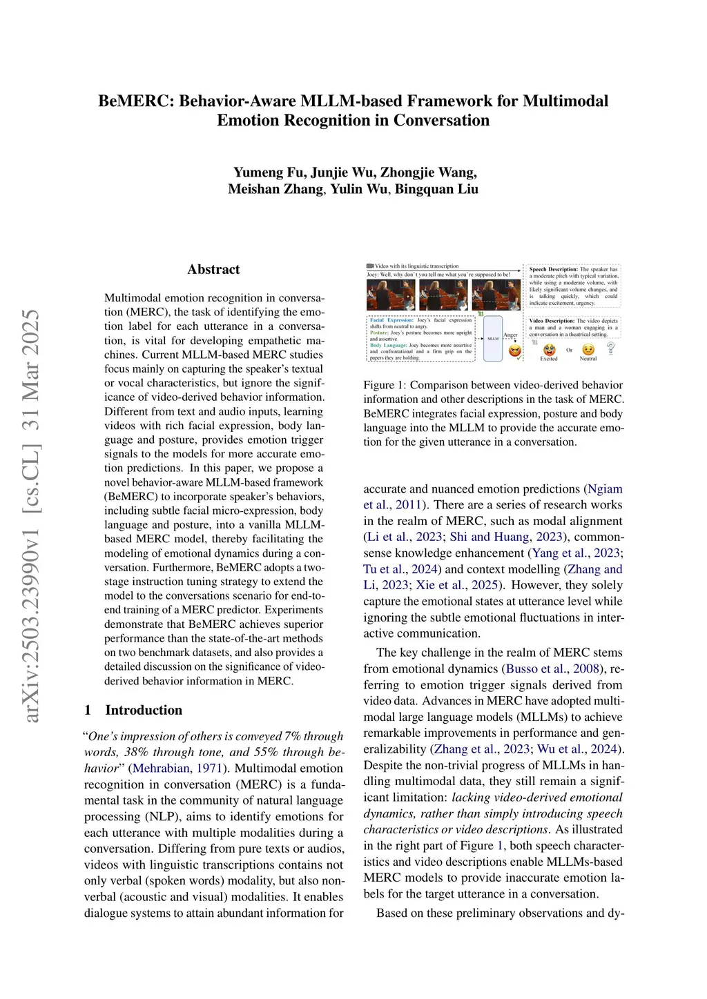 BeMERC: Behavior-Aware MLLM-based Framework for Multimodal Emotion Recognition in Conversation