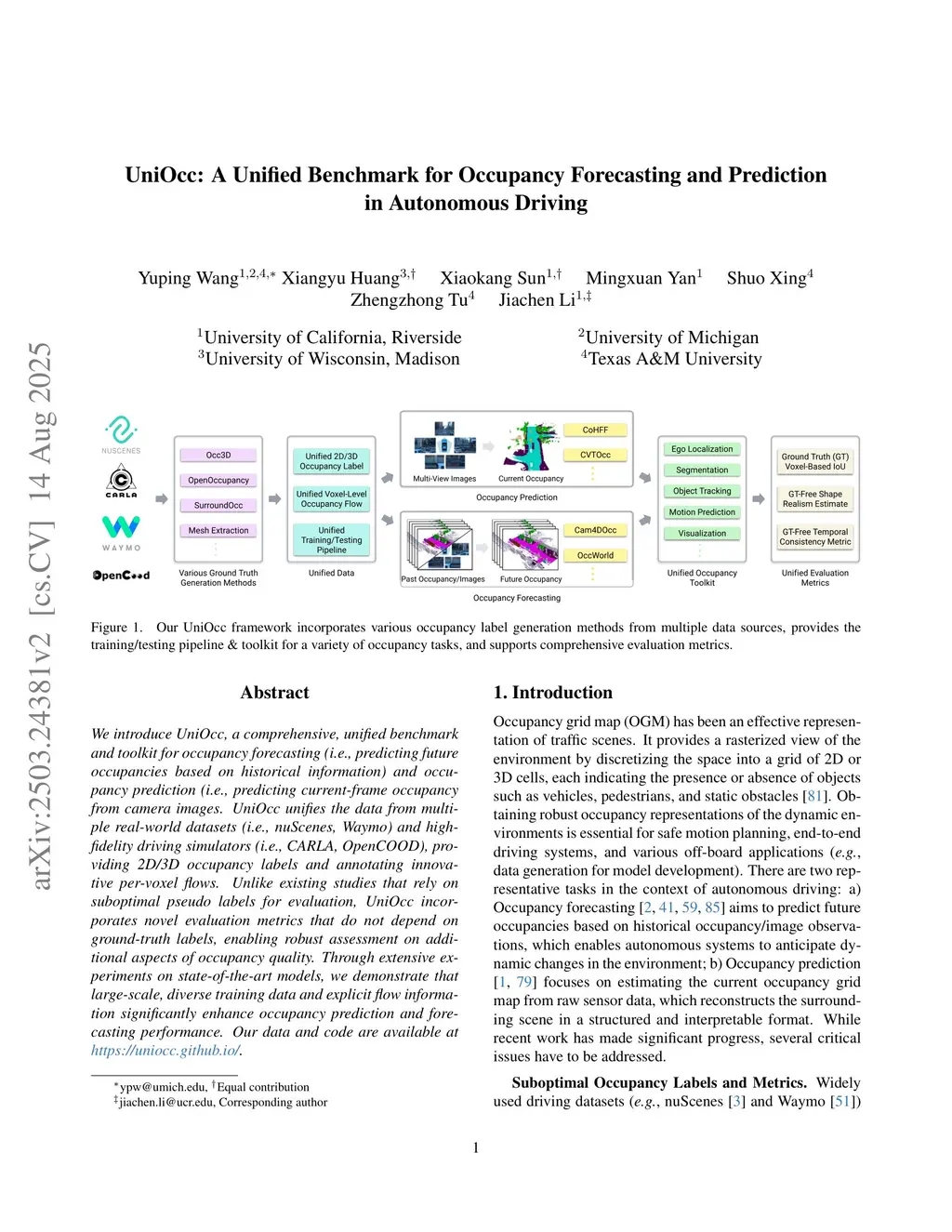 UniOcc: A Unified Benchmark for Occupancy Forecasting and Prediction in Autonomous Driving