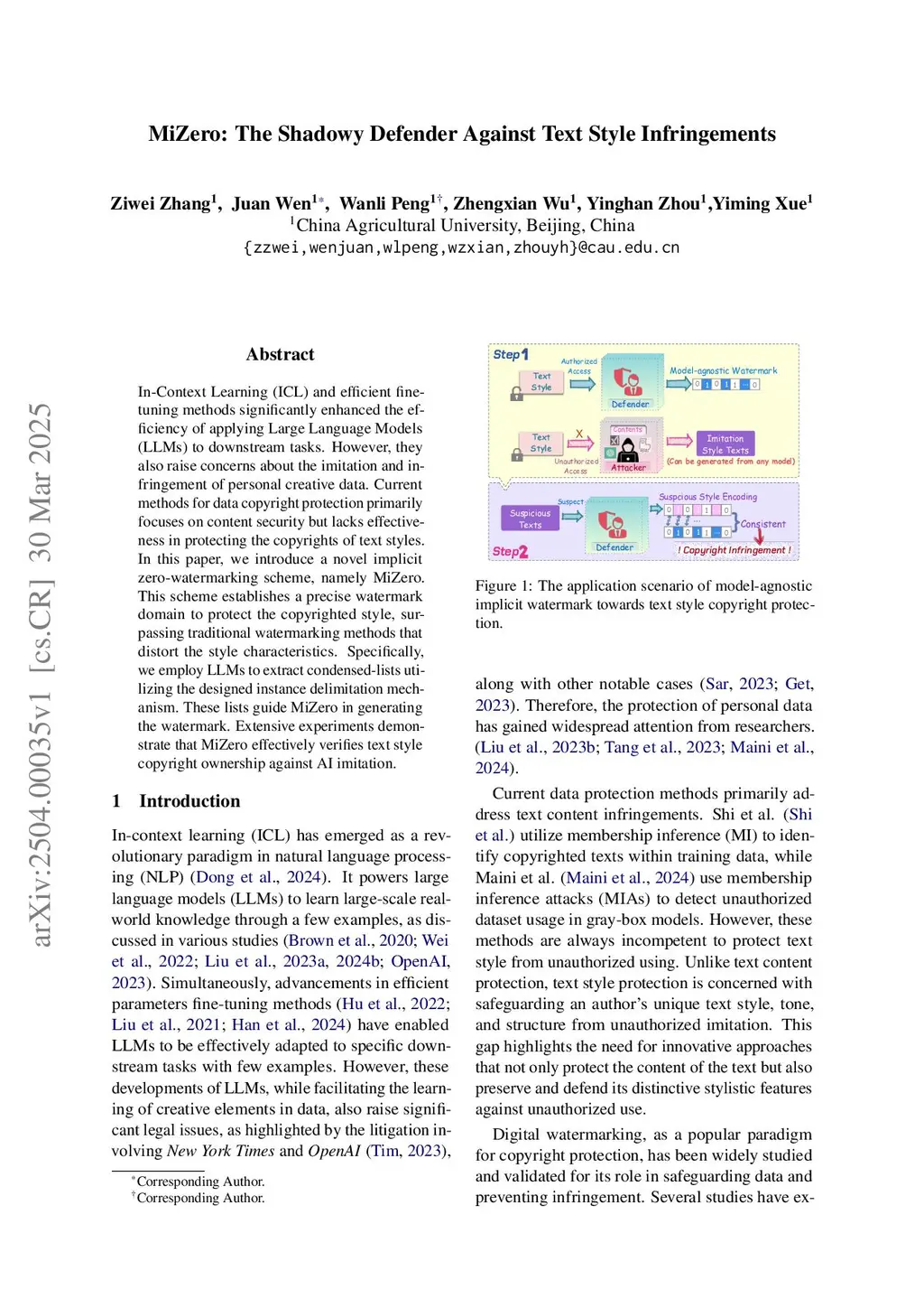 Efficient knowledge injection methods for Large Language Models (LLMs), such as In-Context Learning, knowledge editing, and efficient parameter fine-tuning, significantly enhance model utility on downstream tasks. However, they also pose substantial risks of unauthorized imitation and compromised data provenance for high-value unstructured data assets like creative works. Current copyright protection methods for creative works predominantly focus on visual arts, leaving a critical and unaddressed data engineering challenge in the safeguarding of creative writing. In this paper, we propose WIND (Watermarking via Implicit and Non-disruptive Disentanglement), a novel zero-watermarking, verifiable and implicit scheme that safeguards creative writing databases by providing verifiable copyright protection. Specifically, we decompose creative essence into five key elements, which are extracted utilizing LLMs through a designed instance delimitation mechanism and consolidated into condensed-lists. These lists enable WIND to convert core copyright attributes into verifiable watermarks via implicit encoding within a disentanglement creative space, where 'disentanglement' refers to the separation of creative-specific and creative-irrelevant features. This approach, utilizing implicit encoding, avoids distorting fragile textual content. Extensive experiments demonstrate that WIND effectively verifies creative writing copyright ownership against AI imitation, achieving F1 scores above 98% and maintaining robust performance under stringent low false-positive rates where existing state-of-the-art text watermarking methods struggle.