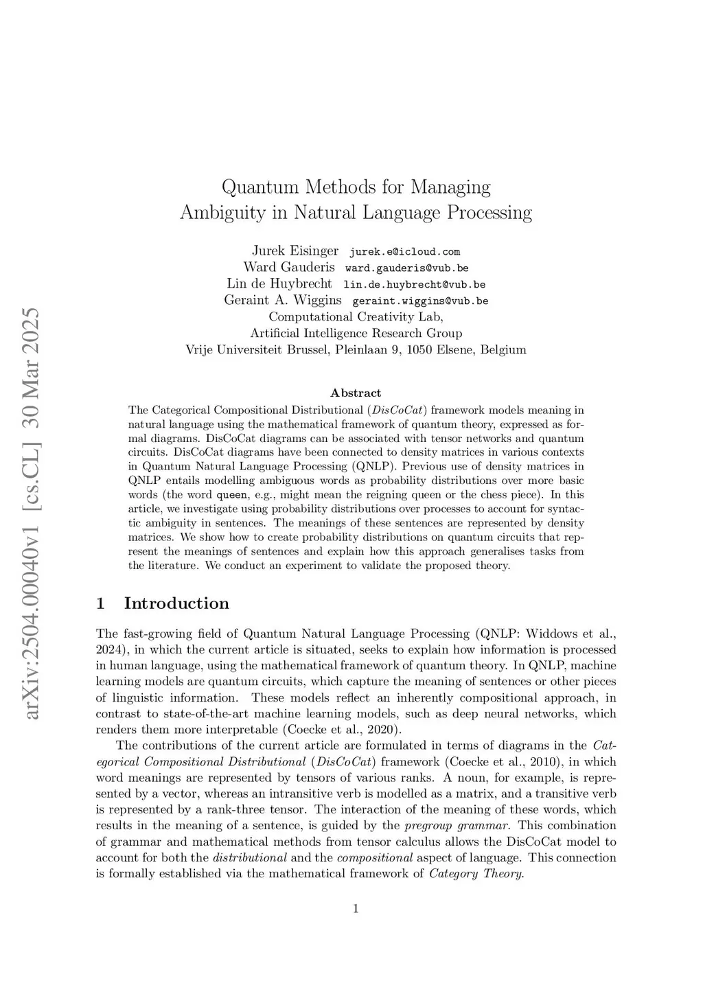 Quantum Methods for Managing Ambiguity in Natural Language Processing