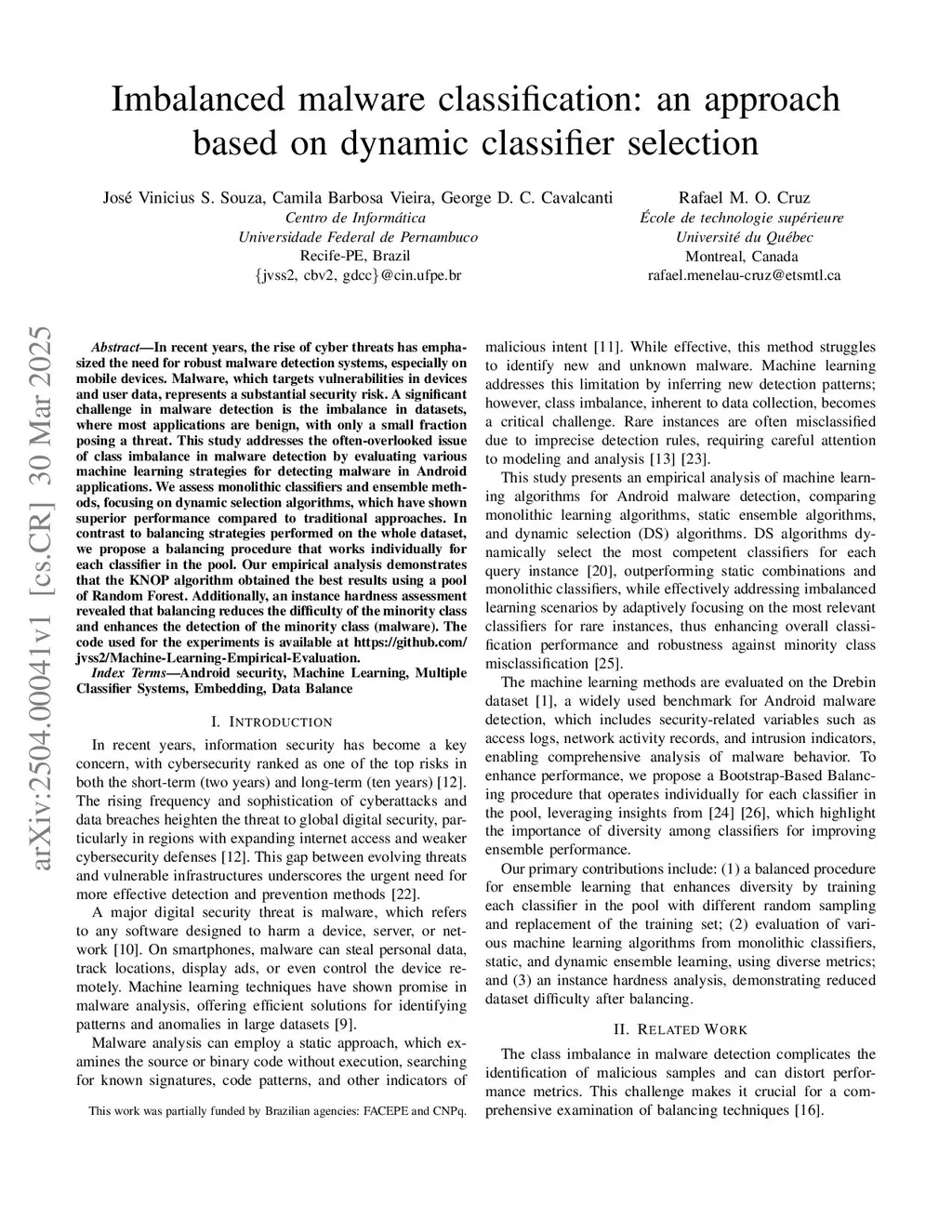 Imbalanced malware classification: an approach based on dynamic classifier selection