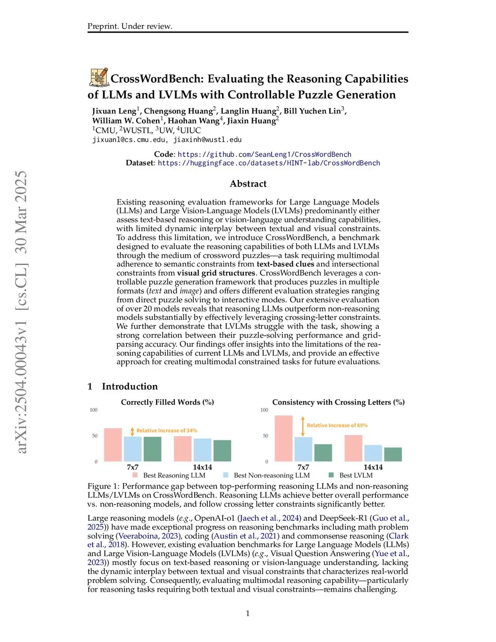 CrossWordBench: Evaluating the Reasoning Capabilities of LLMs and LVLMs with Controllable Puzzle Generation