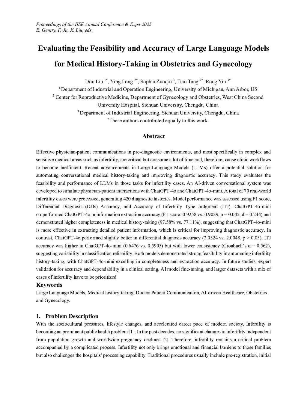Effective physician-patient communications in pre-diagnostic environments, and most specifically in complex and sensitive medical areas such as infertility, are critical but consume a lot of time and, therefore, cause clinic workflows to become inefficient. Recent advancements in Large Language Models (LLMs) offer a potential solution for automating conversational medical history-taking and improving diagnostic accuracy. This study evaluates the feasibility and performance of LLMs in those tasks for infertility cases. An AI-driven conversational system was developed to simulate physician-patient interactions with ChatGPT-4o and ChatGPT-4o-mini. A total of 70 real-world infertility cases were processed, generating 420 diagnostic histories. Model performance was assessed using F1 score, Differential Diagnosis (DDs) Accuracy, and Accuracy of Infertility Type Judgment (ITJ). ChatGPT-4o-mini outperformed ChatGPT-4o in information extraction accuracy (F1 score: 0.9258 vs. 0.9029, p = 0.045, d = 0.244) and demonstrated higher completeness in medical history-taking (97.58% vs. 77.11%), suggesting that ChatGPT-4o-mini is more effective in extracting detailed patient information, which is critical for improving diagnostic accuracy. In contrast, ChatGPT-4o performed slightly better in differential diagnosis accuracy (2.0524 vs. 2.0048, p > 0.05). ITJ accuracy was higher in ChatGPT-4o-mini (0.6476 vs. 0.5905) but with lower consistency (Cronbach's = 0.562), suggesting variability in classification reliability. Both models demonstrated strong feasibility in automating infertility history-taking, with ChatGPT-4o-mini excelling in completeness and extraction accuracy. In future studies, expert validation for accuracy and dependability in a clinical setting, AI model fine-tuning, and larger datasets with a mix of cases of infertility have to be prioritized.