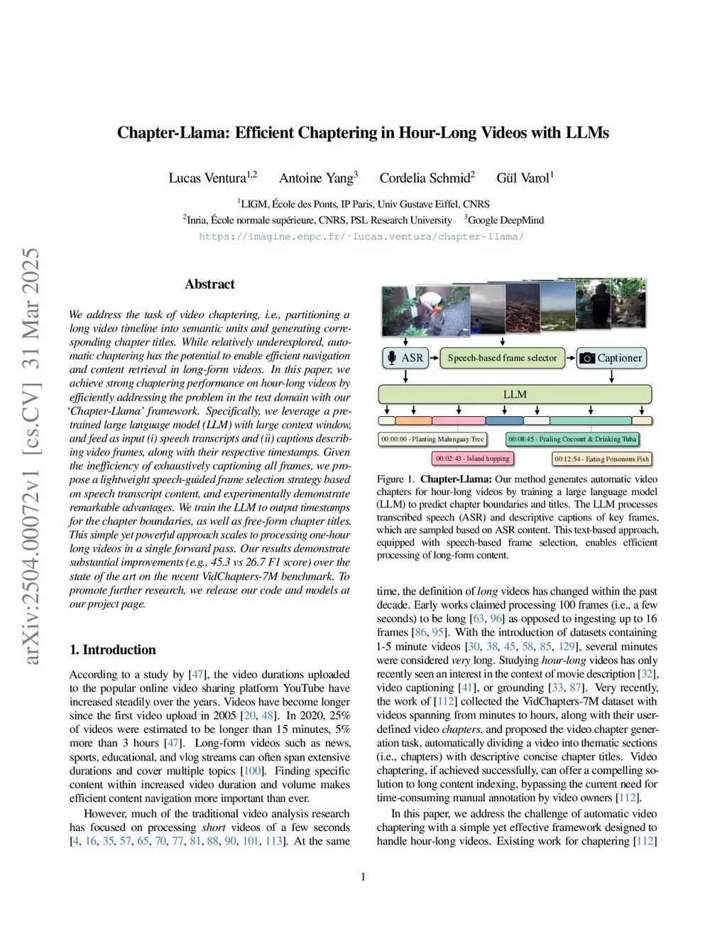 Chapter-Llama: Efficient Chaptering in Hour-Long Videos with LLMs