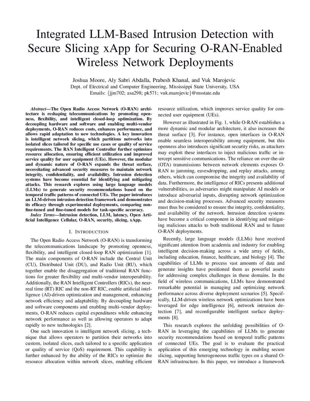 Integrated LLM-Based Intrusion Detection with Secure Slicing xApp for Securing O-RAN-Enabled Wireless Network Deployments