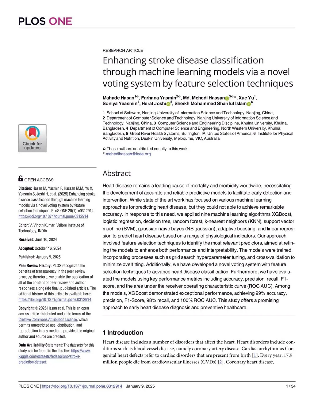 Stroke Disease Classification Using Machine Learning with Feature Selection Techniques