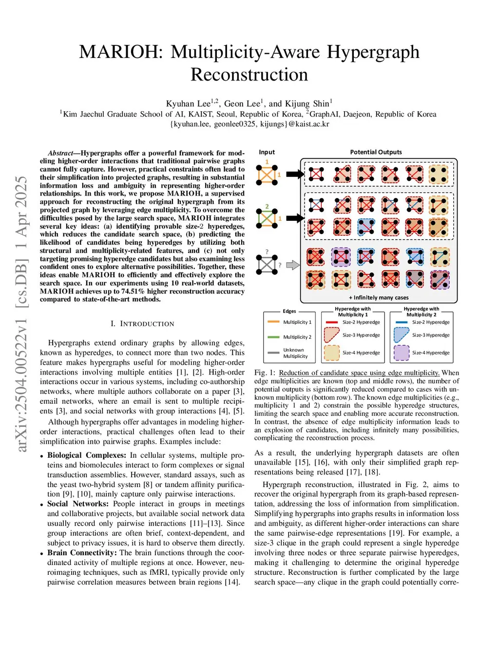 Hypergraphs offer a powerful framework for modeling higher-order interactions that traditional pairwise graphs cannot fully capture. However, practical constraints often lead to their simplification into projected graphs, resulting in substantial information loss and ambiguity in representing higher-order relationships. In this work, we propose MARIOH, a supervised approach for reconstructing the original hypergraph from its projected graph by leveraging edge multiplicity. To overcome the difficulties posed by the large search space, MARIOH integrates several key ideas: (a) identifying provable size-2 hyperedges, which reduces the candidate search space, (b) predicting the likelihood of candidates being hyperedges by utilizing both structural and multiplicity-related features, and (c) not only targeting promising hyperedge candidates but also examining less confident ones to explore alternative possibilities. Together, these ideas enable MARIOH to efficiently and effectively explore the search space. In our experiments using 10 real-world datasets, MARIOH achieves up to 74.51% higher reconstruction accuracy compared to state-of-the-art methods.