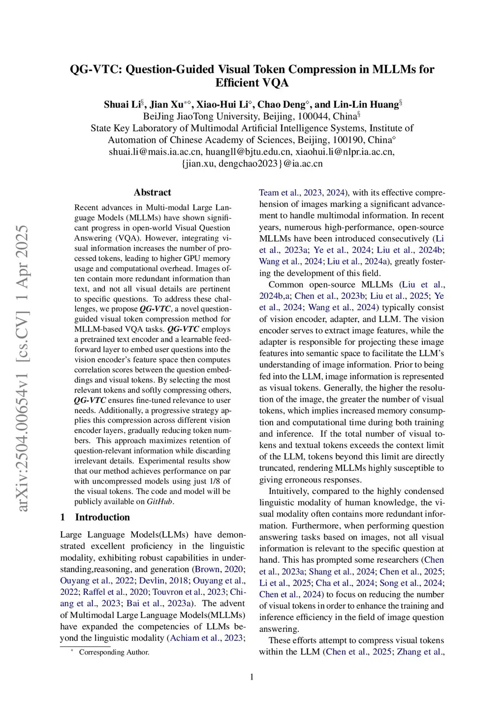 QG-VTC: Question-Guided Visual Token Compression in MLLMs for Efficient VQA