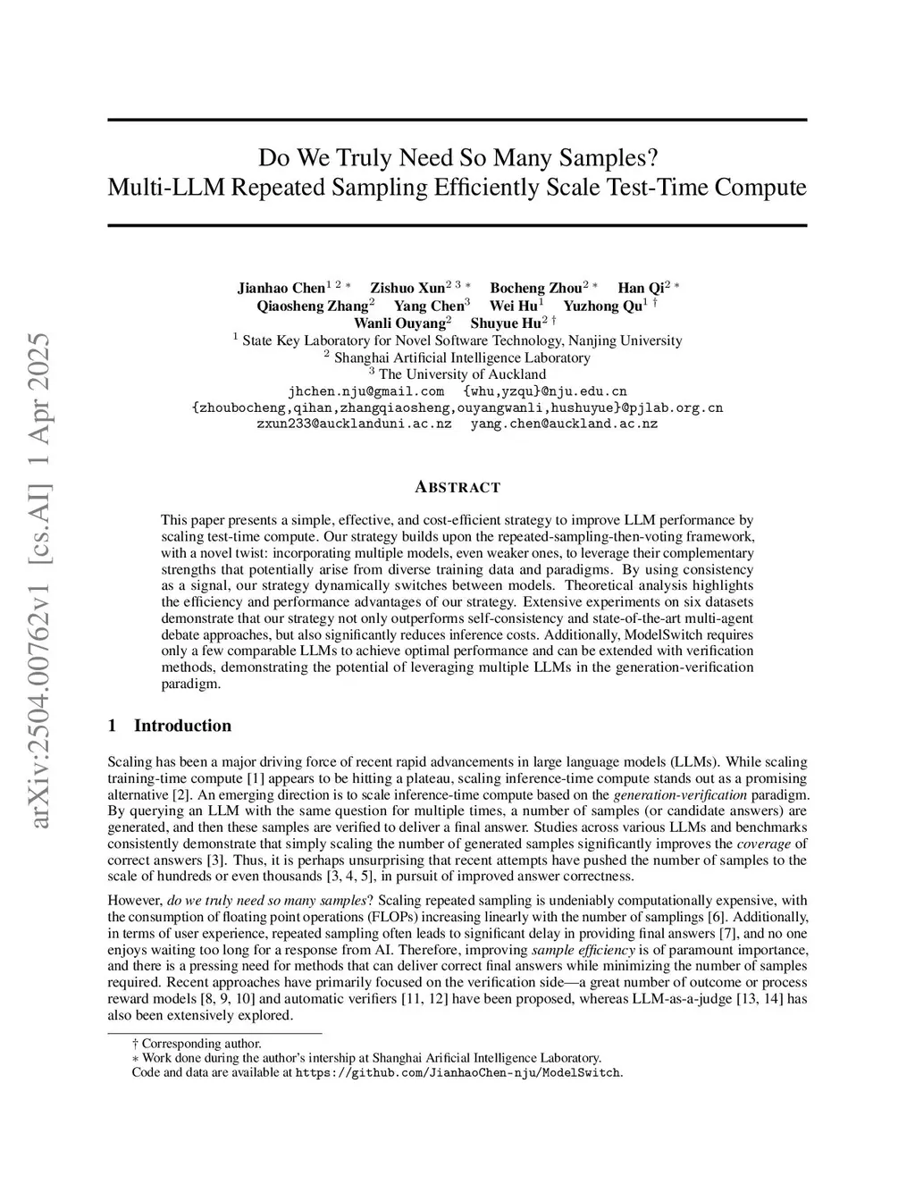 Do We Truly Need So Many Samples? Multi-LLM Repeated Sampling Efficiently Scales Test-Time Compute
