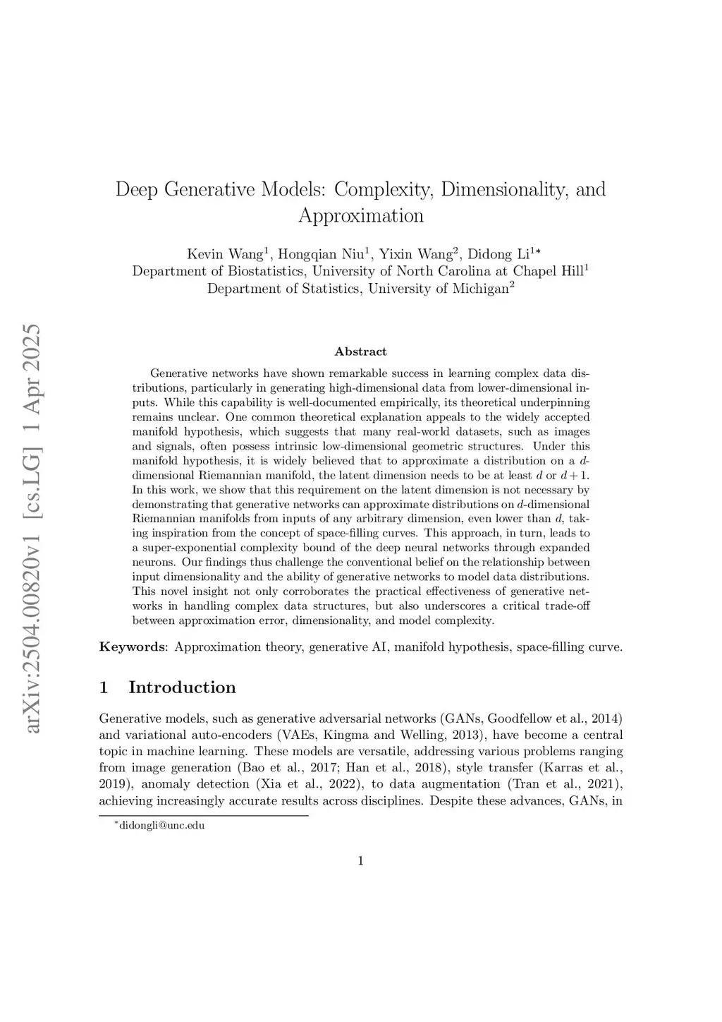 Generative networks have shown remarkable success in learning complex data distributions, particularly in generating high-dimensional data from lower-dimensional inputs. While this capability is well-documented empirically, its theoretical underpinning remains unclear. One common theoretical explanation appeals to the widely accepted manifold hypothesis, which suggests that many real-world datasets, such as images and signals, often possess intrinsic low-dimensional geometric structures. Under this manifold hypothesis, it is widely believed that to approximate a distribution on a -dimensional Riemannian manifold, the latent dimension needs to be at least or . In this work, we show that this requirement on the latent dimension is not necessary by demonstrating that generative networks can approximate distributions on -dimensional Riemannian manifolds from inputs of any arbitrary dimension, even lower than , taking inspiration from the concept of space-filling curves. This approach, in turn, leads to a super-exponential complexity bound of the deep neural networks through expanded neurons. Our findings thus challenge the conventional belief on the relationship between input dimensionality and the ability of generative networks to model data distributions. This novel insight not only corroborates the practical effectiveness of generative networks in handling complex data structures, but also underscores a critical trade-off between approximation error, dimensionality, and model complexity.