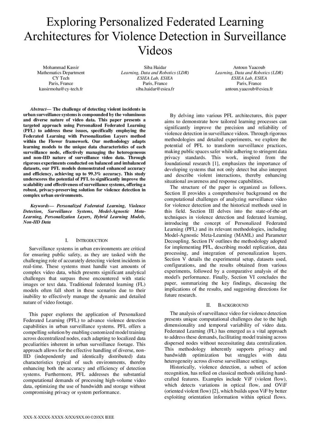 The challenge of detecting violent incidents in urban surveillance systems is compounded by the voluminous and diverse nature of video data. This paper presents a targeted approach using Personalized Federated Learning (PFL) to address these issues, specifically employing the Federated Learning with Personalization Layers method within the Flower framework. Our methodology adapts learning models to the unique data characteristics of each surveillance node, effectively managing the heterogeneous and non-IID nature of surveillance video data. Through rigorous experiments conducted on balanced and imbalanced datasets, our PFL models demonstrated enhanced accuracy and efficiency, achieving up to 99.3% accuracy. This study underscores the potential of PFL to significantly improve the scalability and effectiveness of surveillance systems, offering a robust, privacy-preserving solution for violence detection in complex urban environments.