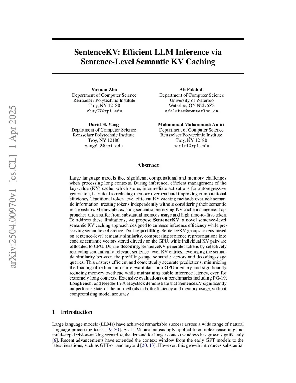 SentenceKV: Efficient LLM Inference via Sentence-Level Semantic KV Caching