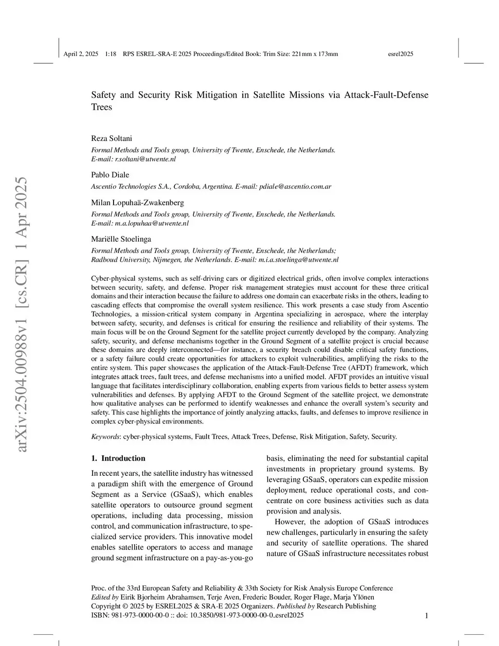Cyber-physical systems, such as self-driving cars or digitized electrical grids, often involve complex interactions between security, safety, and defense. Proper risk management strategies must account for these three critical domains and their interaction because the failure to address one domain can exacerbate risks in the others, leading to cascading effects that compromise the overall system resilience. This work presents a case study from Ascentio Technologies, a mission-critical system company in Argentina specializing in aerospace, where the interplay between safety, security, and defenses is critical for ensuring the resilience and reliability of their systems. The main focus will be on the Ground Segment for the satellite project currently developed by the company. Analyzing safety, security, and defense mechanisms together in the Ground Segment of a satellite project is crucial because these domains are deeply interconnected--for instance, a security breach could disable critical safety functions, or a safety failure could create opportunities for attackers to exploit vulnerabilities, amplifying the risks to the entire system. This paper showcases the application of the Attack-Fault-Defense Tree (AFDT) framework, which integrates attack trees, fault trees, and defense mechanisms into a unified model. AFDT provides an intuitive visual language that facilitates interdisciplinary collaboration, enabling experts from various fields to better assess system vulnerabilities and defenses. By applying AFDT to the Ground Segment of the satellite project, we demonstrate how qualitative analyses can be performed to identify weaknesses and enhance the overall system's security and safety. This case highlights the importance of jointly analyzing attacks, faults, and defenses to improve resilience in complex cyber-physical environments.