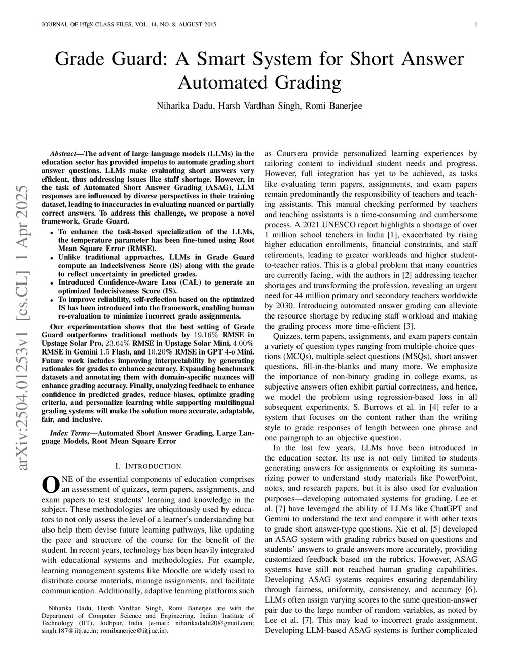 Grade Guard: A Smart System for Short Answer Automated Grading